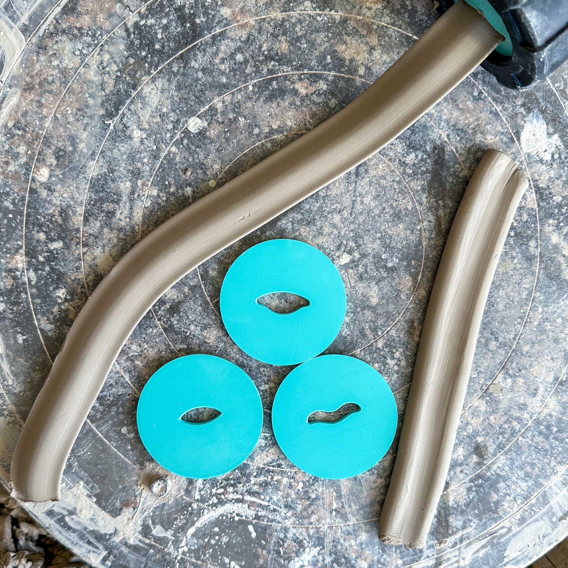 Dies made for use with a handheld extruder to easily make consistent shaped handles. And in a bright Teal Blue so you won't keep losing them in the studio (just me then?).