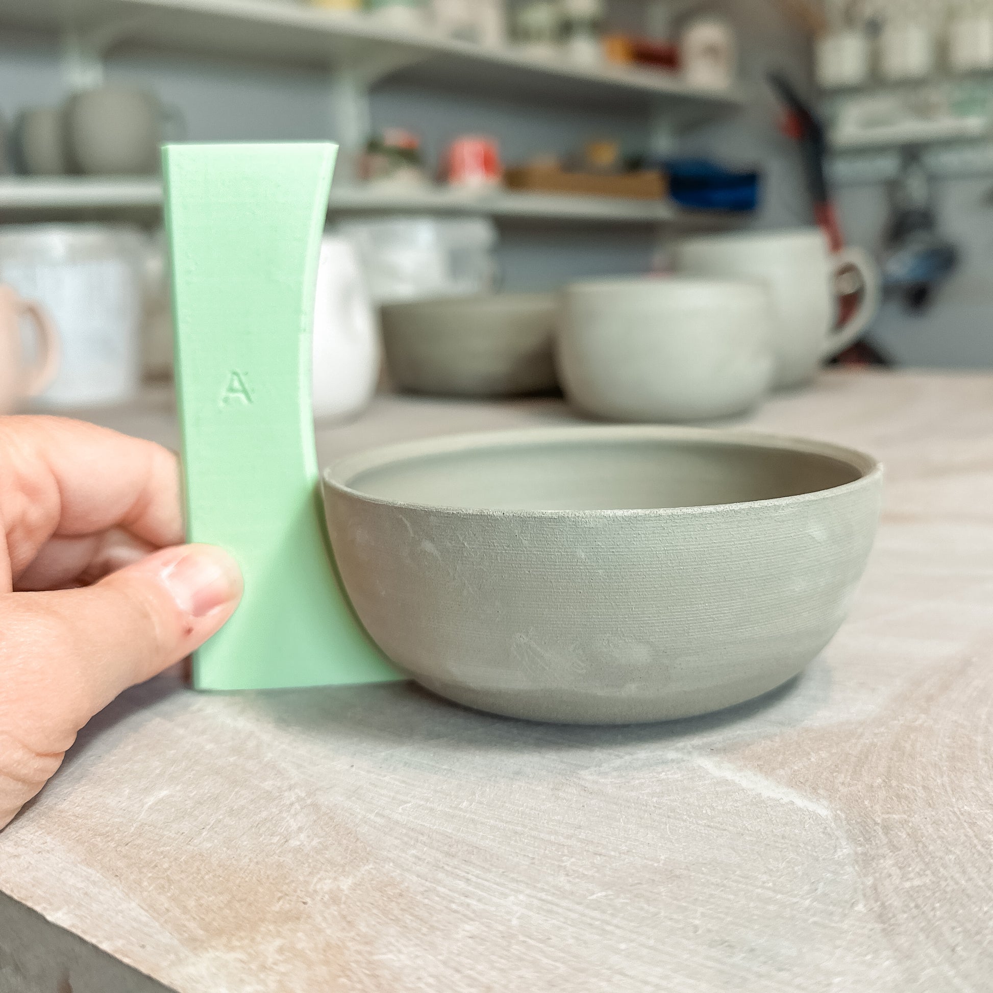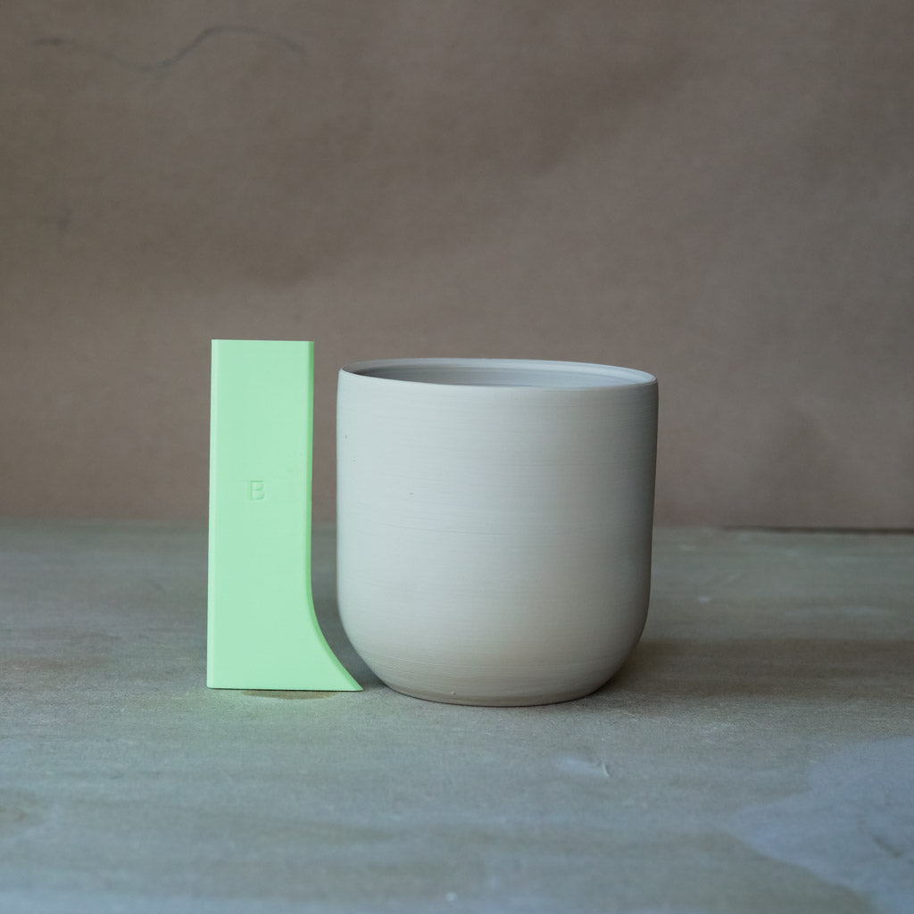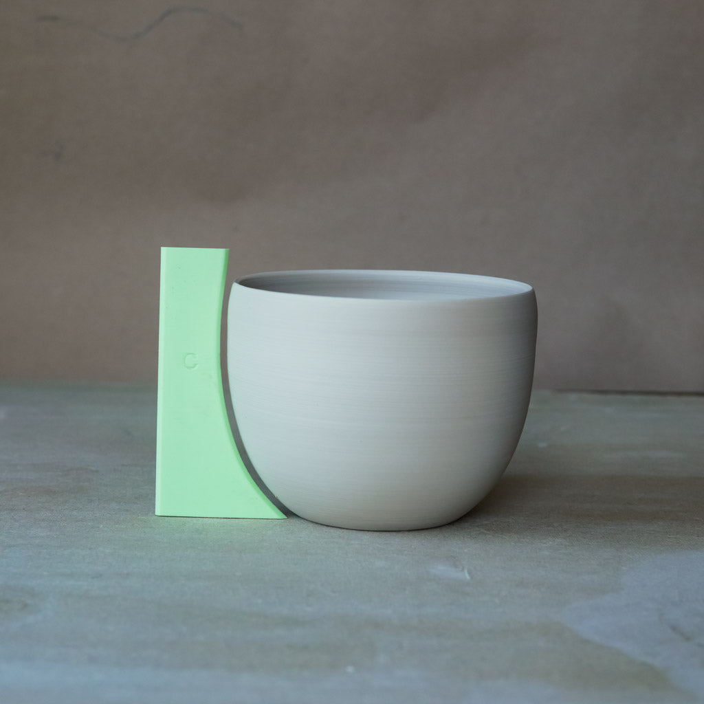 Curves are tricky to throw so I've designed three ribs to help you form consistent curves quickly. Throwing faster is a key to efficient making. Throwing consistent forms means not only do your pots look harmonious and uniform, you have to take less individual pictures of every pot, and it helps you learn muscle memory and continue to improve throwing skills, plus they are easier to fit into a kiln (especially bisque firing where they can sit rim to rim).