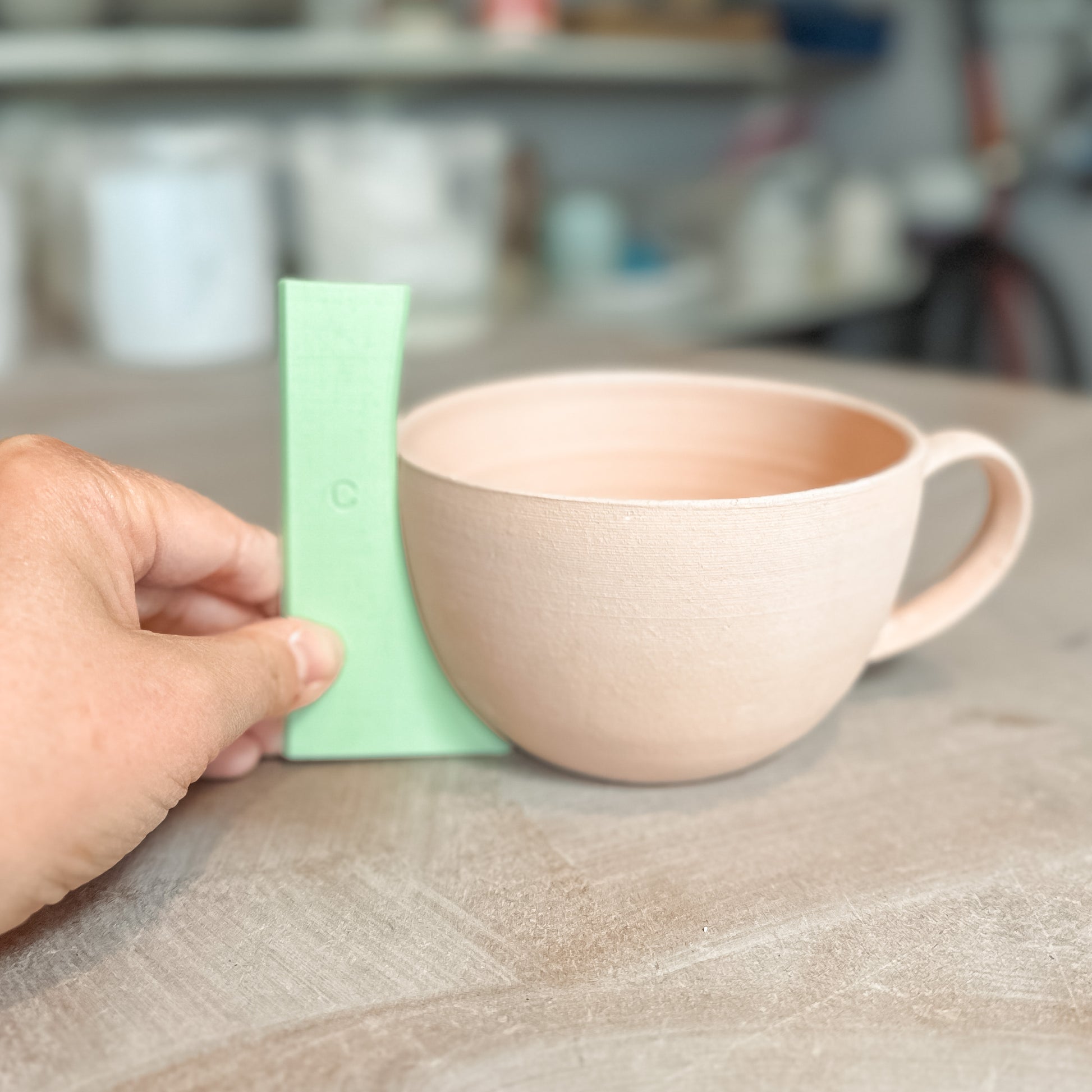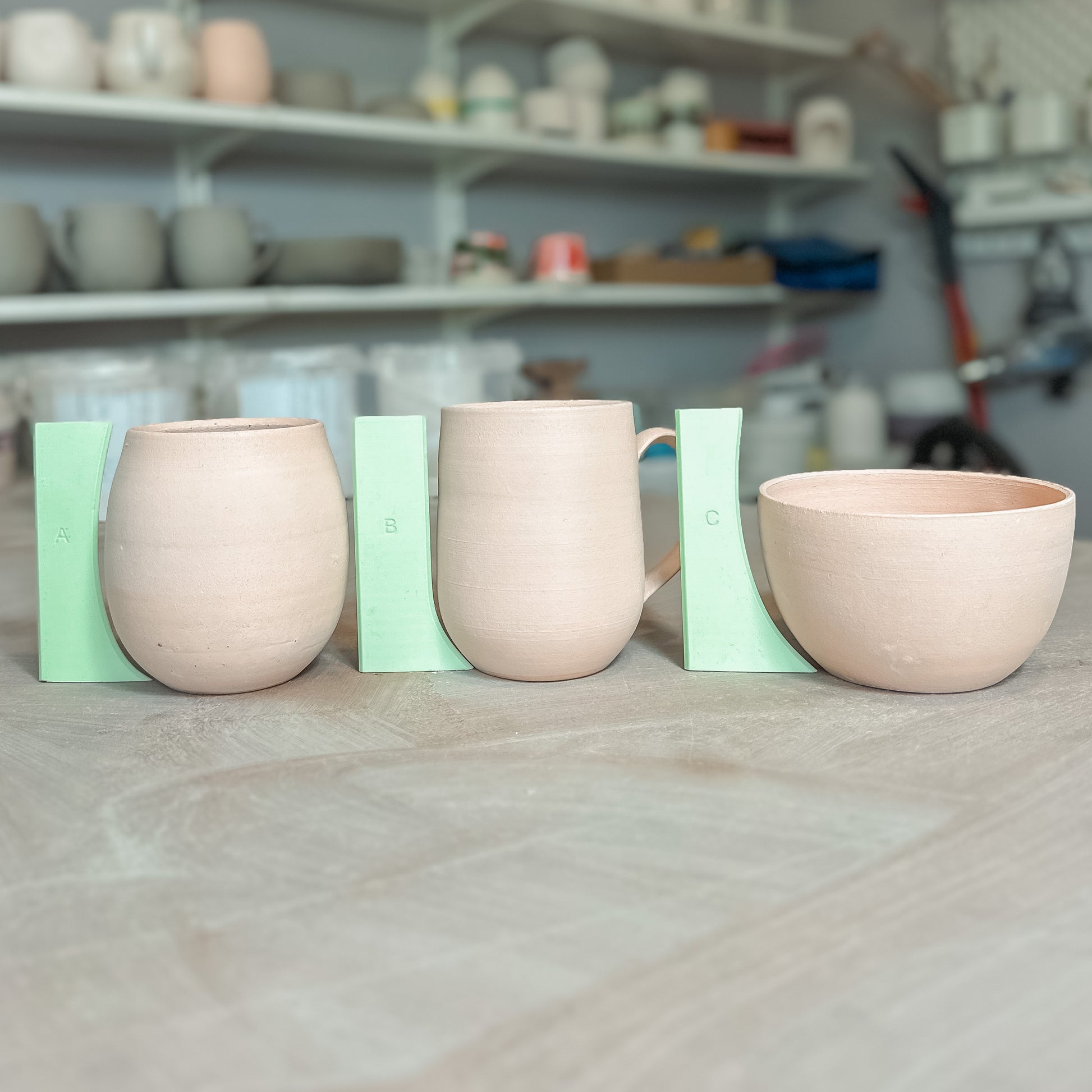Rib C (The Flared One/The Teacup One): this is based on a traditional teacup shape, with a strong curve that flares out at the top. Probably the hardest to use as the wider form stretches the clay, but results in a beautiful open bowl shape for mugs or bowls.