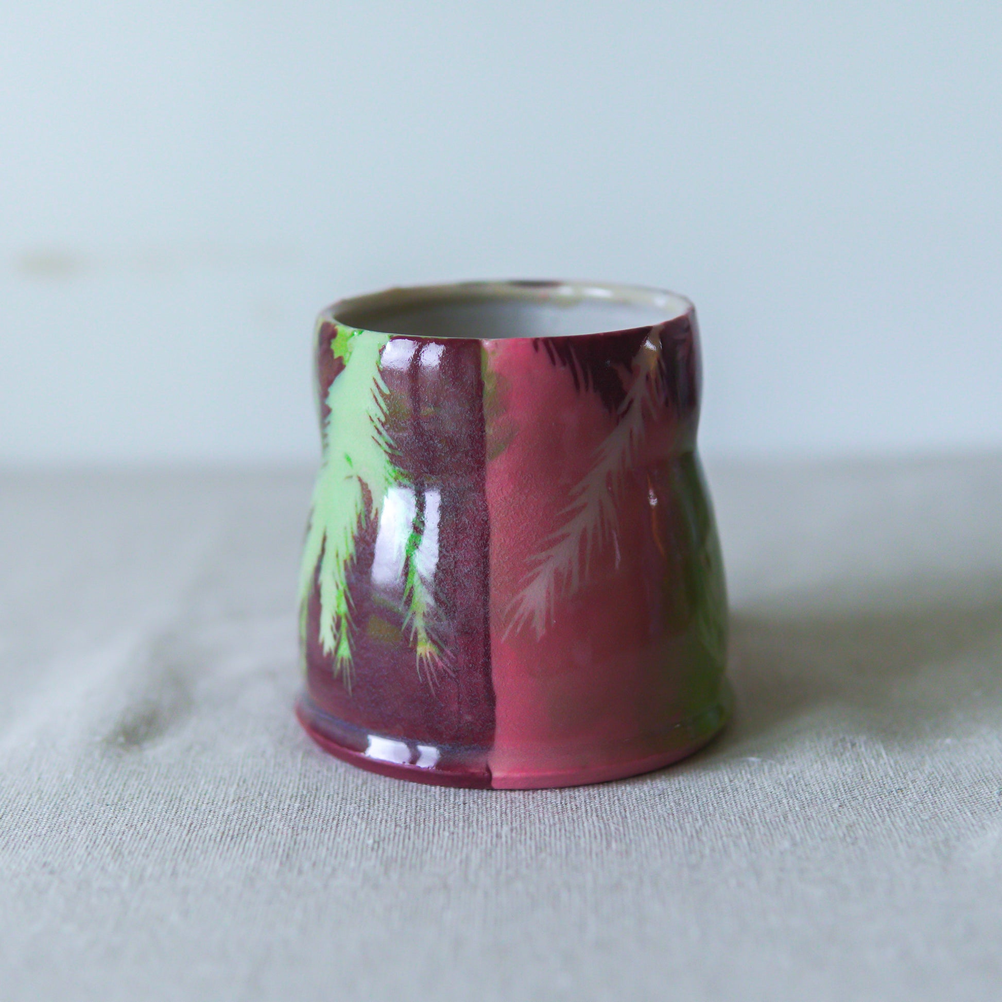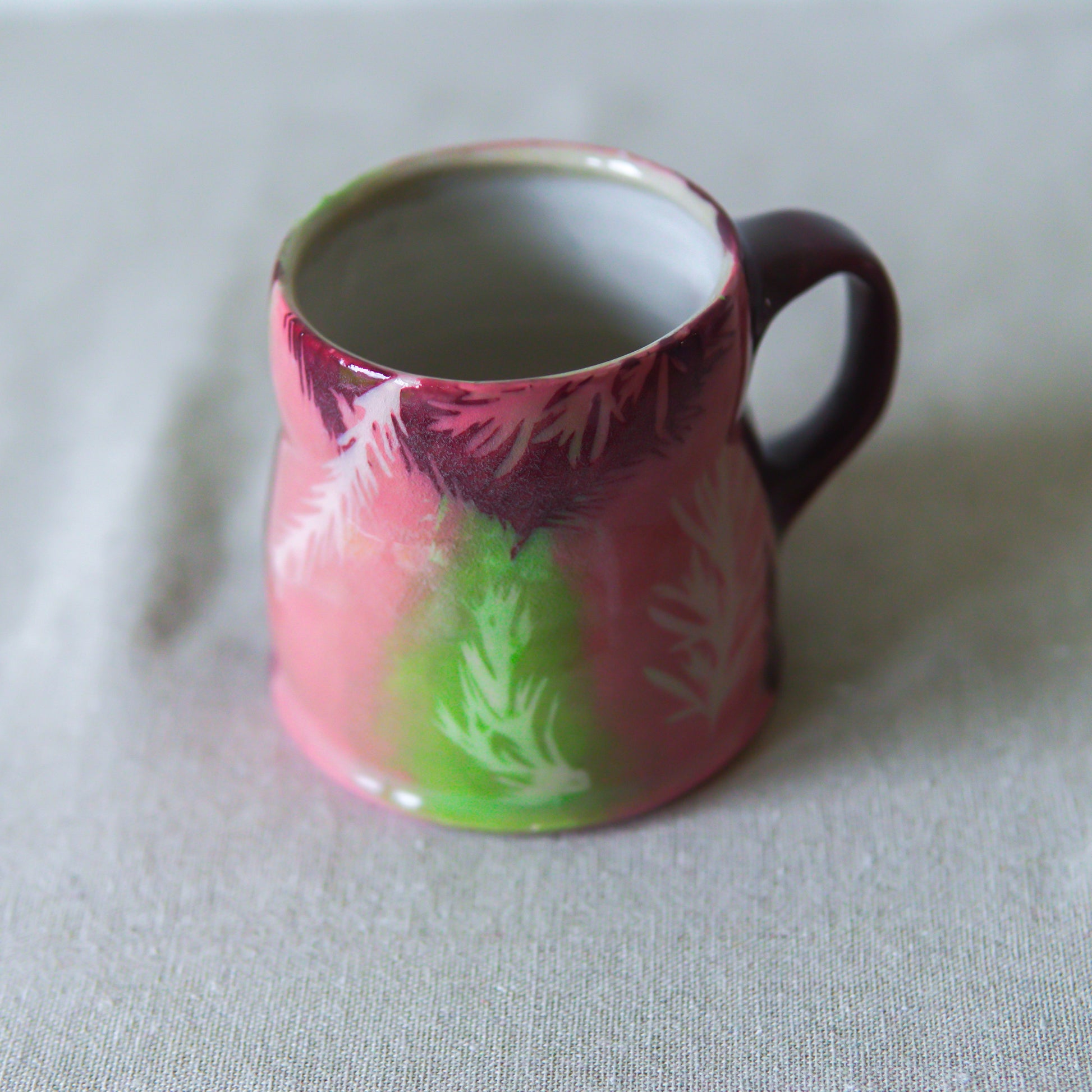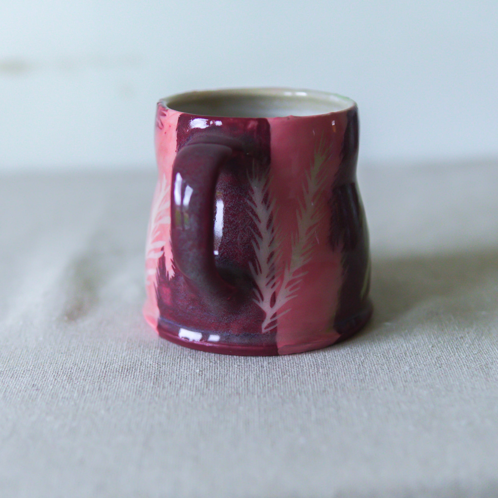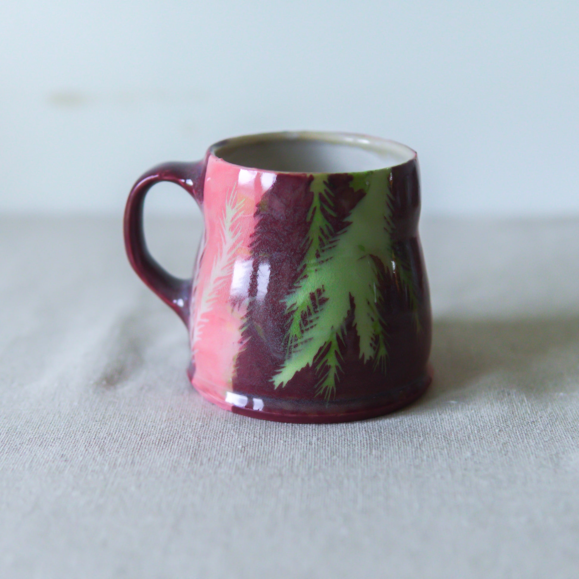 Handmade stoneware mug featuring my illustrated stencils, inspired by winter evergreens. Glossy surface inside and out.