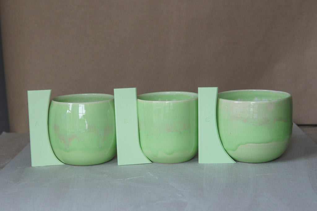 Rib C (The Flared One/The Teacup One): this is based on a traditional teacup shape, with a strong curve that flares out at the top. Probably the hardest to use as the wider form stretches the clay, but results in a beautiful open bowl shape for mugs or bowls.