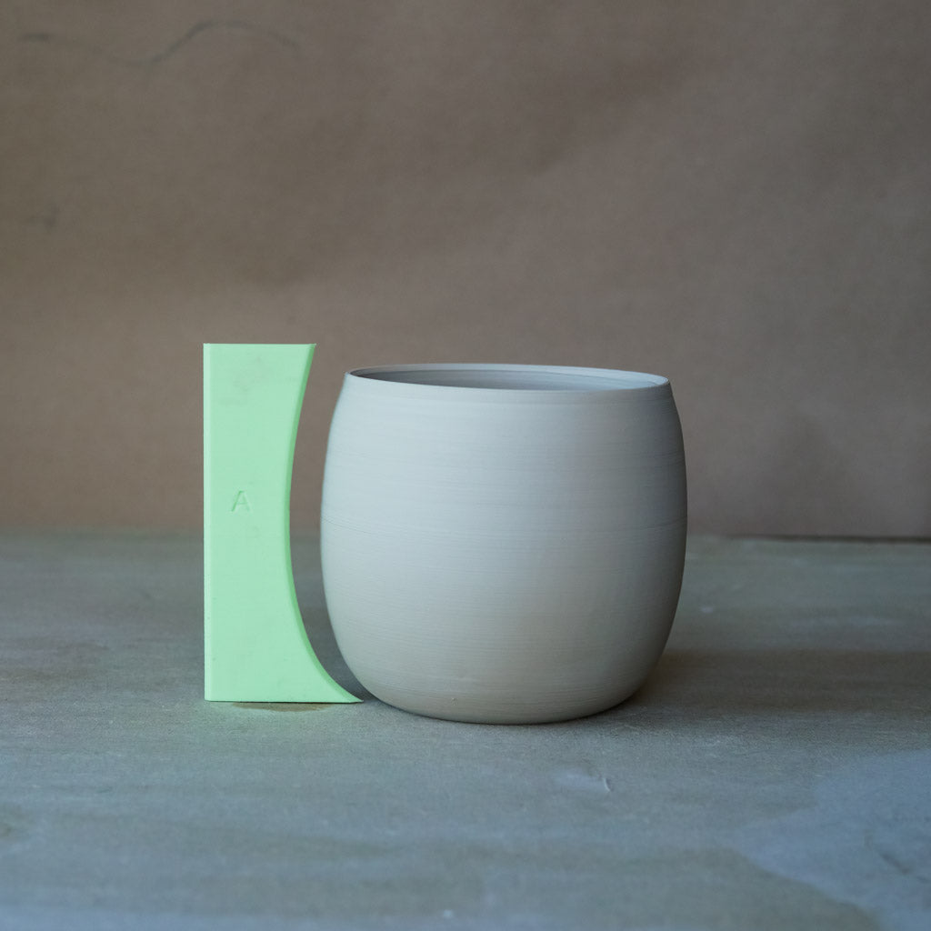 Curves are tricky to throw so I've designed three ribs to help you form consistent curves quickly. Throwing faster is a key to efficient making. Throwing consistent forms means not only do your pots look harmonious and uniform, you have to take less individual pictures of every pot, and it helps you learn muscle memory and continue to improve throwing skills, plus they are easier to fit into a kiln (especially bisque firing where they can sit rim to rim).